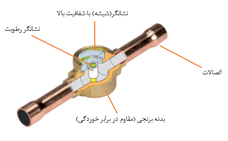 | سایتگلس با نشانگر رطوبت | دارای نشانگر تغییر رنگ برای تشخیص رطوبت مبرد |