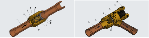 1- لوله ی اتصال / 2- خط جوش / 3- واشر / 4- دیسک / 5- پیستون / 6- فنر / 7- بدنه ی شیر / 8- قطعه ی هدایتگر / 9- صفحه ی متوقف کننده جریان / 10- کاور