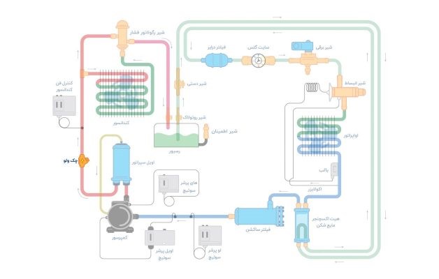 1. خط دهش(دیسشارژ) کمپرسور؛ برای جلوگیری از برگشت گاز مبرد به کمپرسور